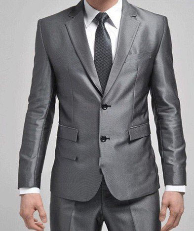 Silver Gray Two Buttons With Two Pockets Groom Suits |