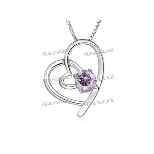 Silver Heart Shape Shiny Purple Diamond Wedding Necklaces |