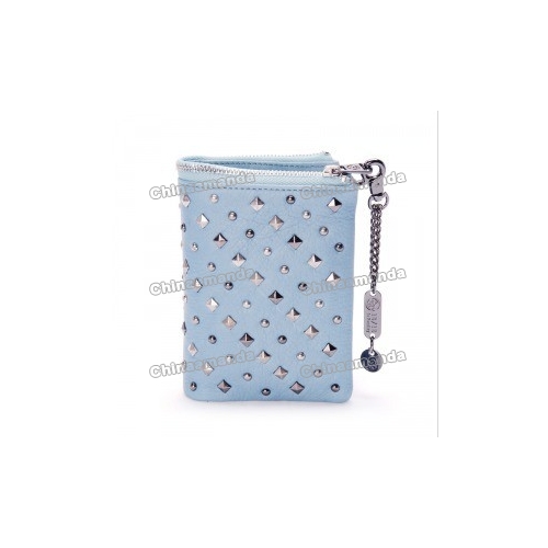 Sky Blue Rivet With Zipper Women's Card Holder |