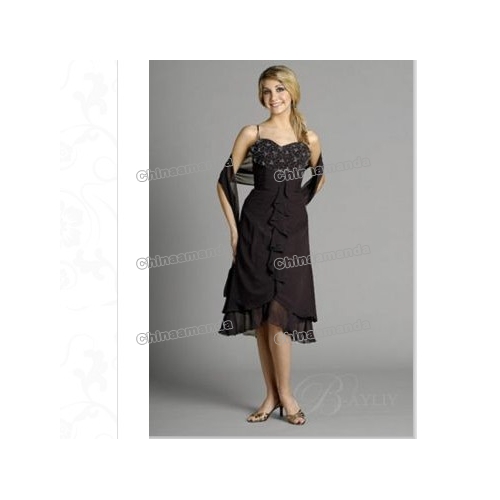 Spaghetti Ruffles Knee Length Black Evening Dresses |
