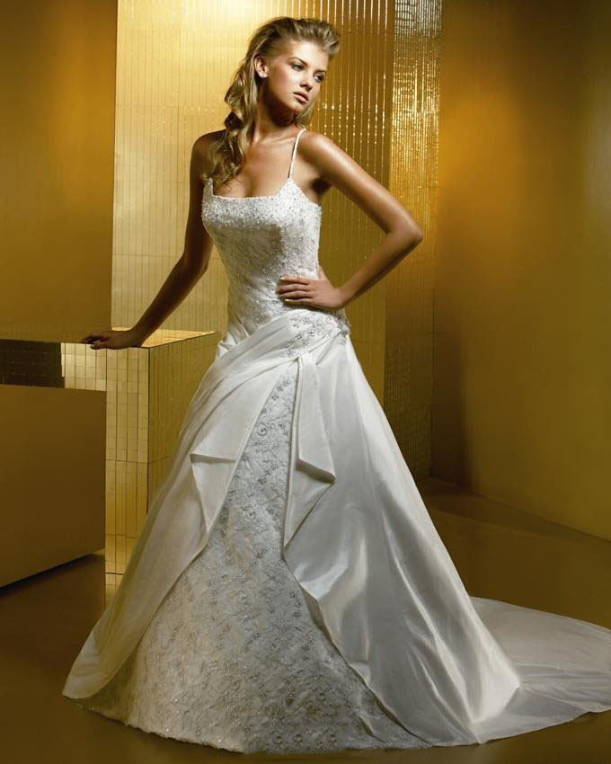 Spaghetti Straps Split Front Matte Satin Breathable Court Train Wedding Dresses |