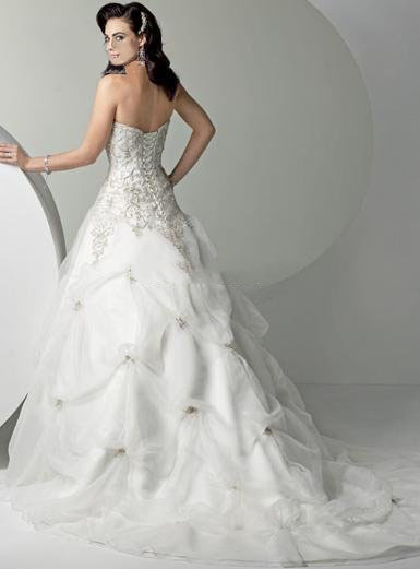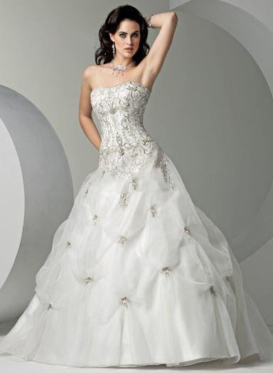 Strapless A Line Wedding Dress Embroidered Tulle Chapel Train Bridal Gowns MS538 BCD |