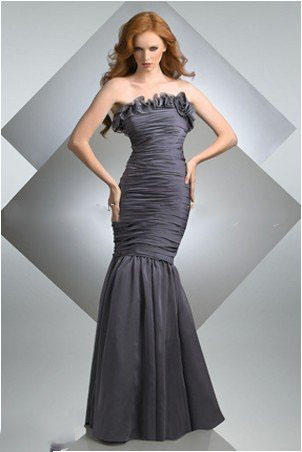 Strapless Shirred Mermaid Gown with Ruffle Satin Floor Length Bridesmaid Gown Prom Gown STYLE: 205 |