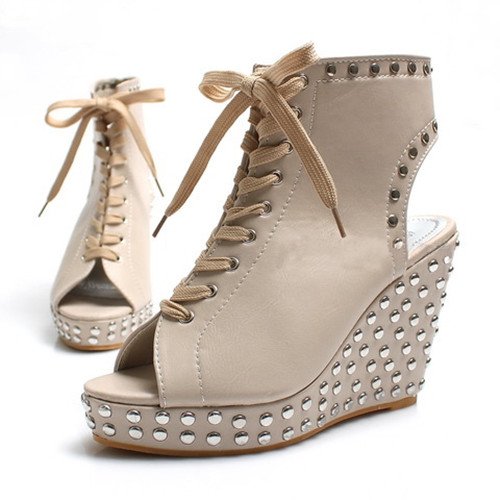 Stylish Women Rivets Platform Wedge Shoes |