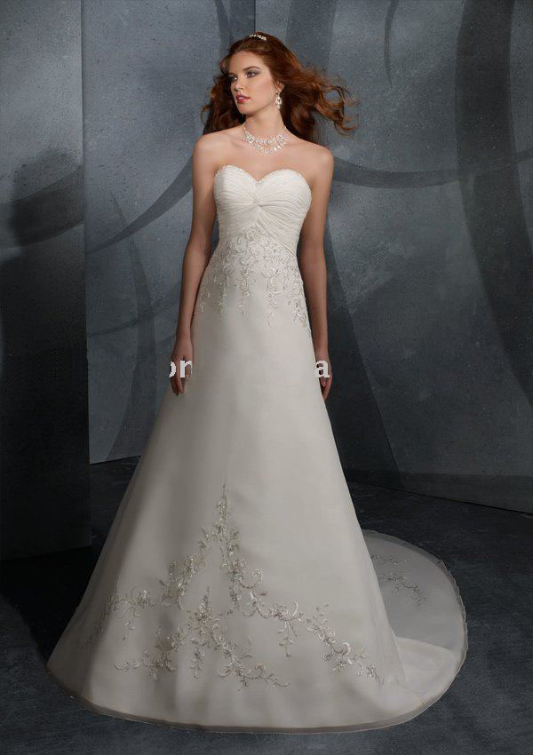 Sweep Train A-line Silk Chiffon Taffeta Lace Up Sweetheart Empire Wedding Dresses |