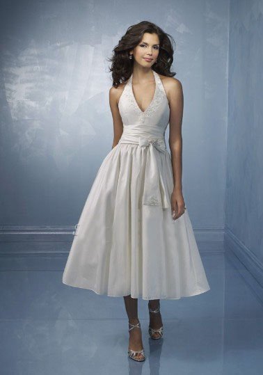 halter beach bridal gown or party dress tea length +free shipping dress factory wholesale price top quality custom-made