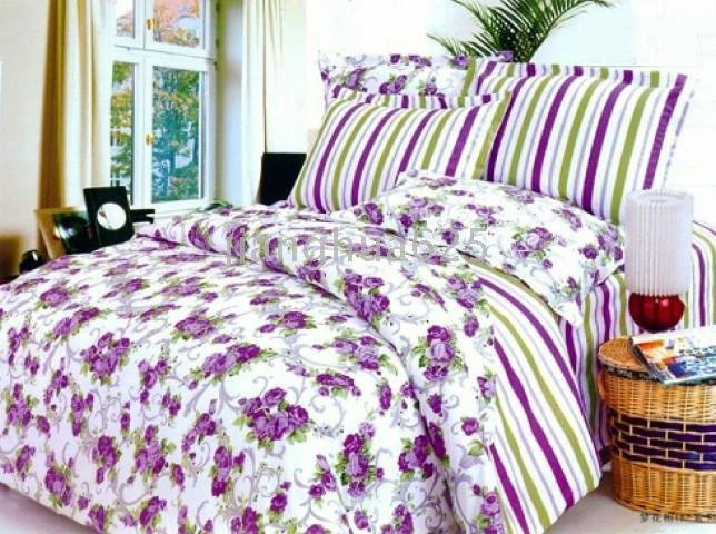Thick Cotton Embroidery Purple Flowers 5 Pieces Bedding Bowing Curtain |