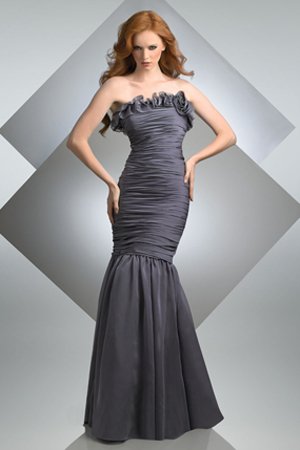 Trumpet Strapless Shirred Mermaid Gown Ruffle Detail Taffeta Floor Length Bridesmaid Dresses |