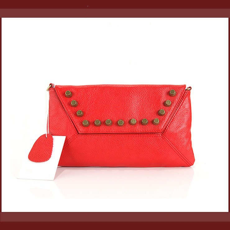 Item Type: Handbags Place of Origin: Guangdong China (Mainland) Brand Name: HOT THING leather bags Closure Type: Zipper & Hasp Handbags Type: Day Clutches Item Width: 3 cm Strap Drop: 50 cm Item Height: 17 cm Gender: Women Style: Fashion Main Material: Genuine Leather Occasion: Versatile Item Length: 30 cm Item Weight: 1 kg Material Composition: top layer cowhide leather Model Number: 785 Color: seven colors bags Condition: New fashion bags Size: W30*H17cm Material: 100% cowhide leather bag Supply type:: In stock leather handbag Product keyword:: fashion clutch bag Fashion bags: designer bags Feature: rivets Feature 2: cross-body bags fashion handbags: Import Italy leather