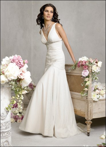 V-Neck A-Line Sheath Column Beach Wedding Dresses |