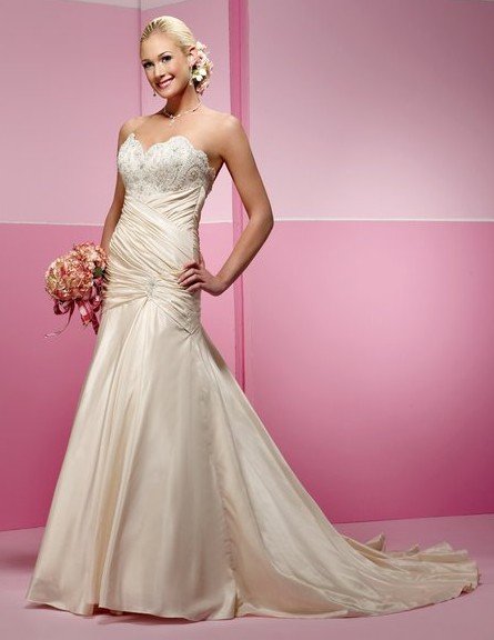 Place of Origin: Shanghai China (Mainland) Feature: Anti-Static,Anti-Wrinkle,B... Brand Name: other Hemline: Floor-Length Fabric Type: Satin Technics: Beaded Design: Sleeveless Silhouette: A-Line Style: Classic Color: Multi-color available Material: 100% Silk Model Number: H023 Supply Type: OEM Service Item Type: Wedding Dresses Sleeve Length: Sleeveless Wedding Dress Fabric: Satin Sleeve Style: Sleeveless Neckline: Strapless Dresses Length: Floor-Length Train: Chapel Train Decoration: Other wedding dress: wedding gown