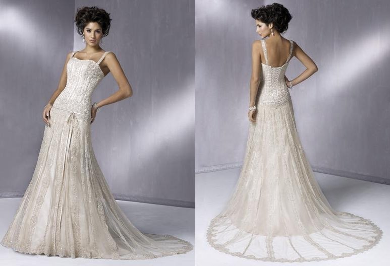 Free Shipping A-Line Gorgeous Bridal Watteau Train Wedding Dresses