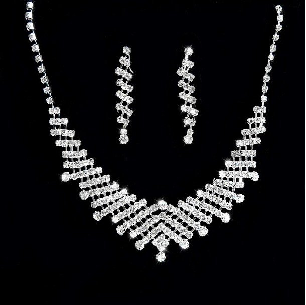 Wedding Accessories Fashion Bride Jewelry Set Diamond Necklaces and Earring |