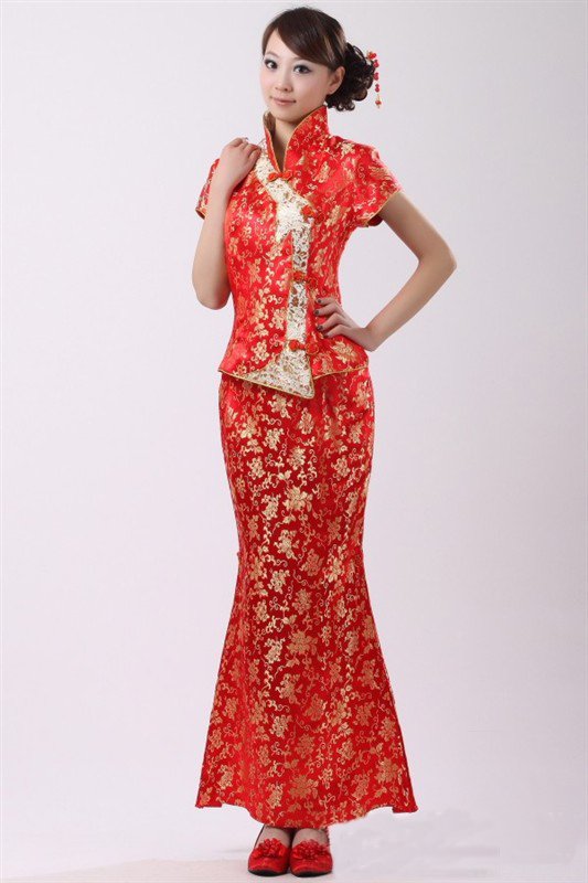 Wedding Dress, Chinese Traditional Mermaid Satin Embroidery Floor Length |