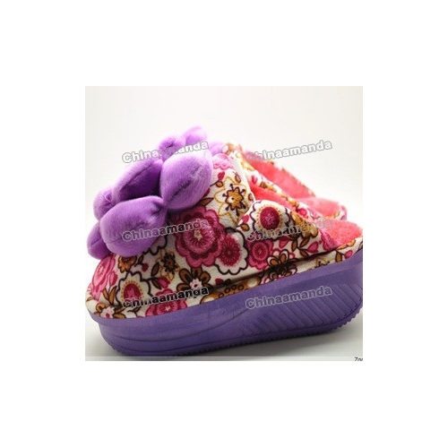 Wedge Style Flowers On Purple Korean Style Winter's Slippers |