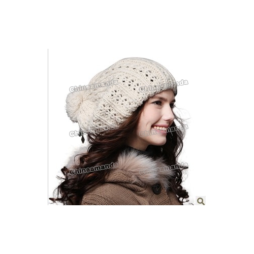 White Gray Cartoon Images On Wool Cute Lovely Women's Winter Hats & Caps |