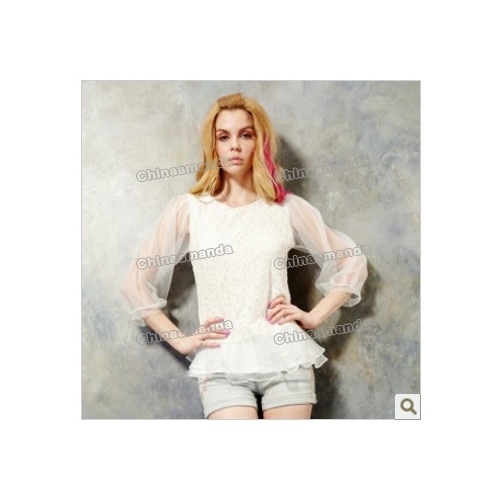 White Lace Tulle With Sleeves Women's Tank Tops |