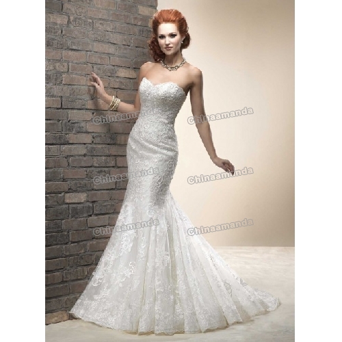 White Mermaid Backless Lace Up Taffeta A-line Wedding Dresses |