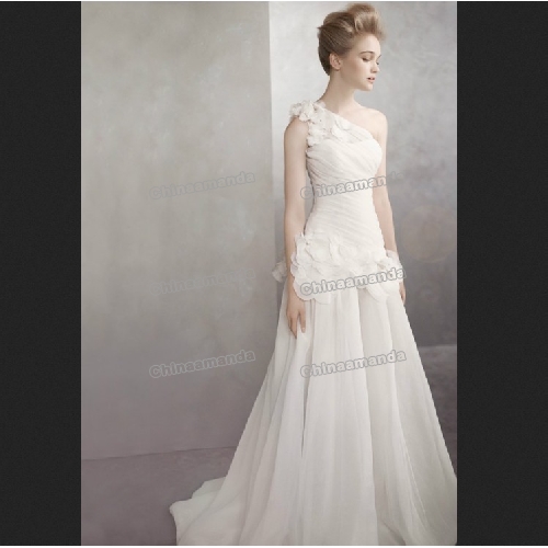 White Organza Flowers One Shoulder Princess Wedding Dresses |