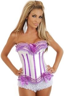 White & Purple With Vertical Stripes Cotton & Polyester Catsuits |