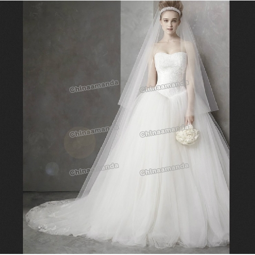 White Sleeveless Ball Organza Beaded Princess Wedding Dresses |