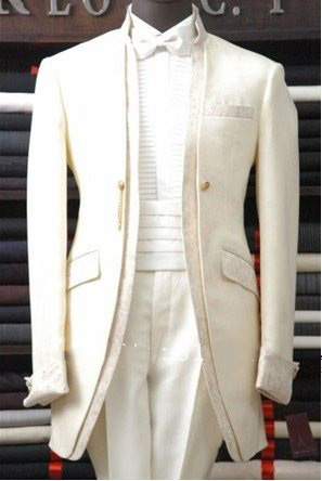 White Two Layers Cotton & Polyester Groom Tuxedos |