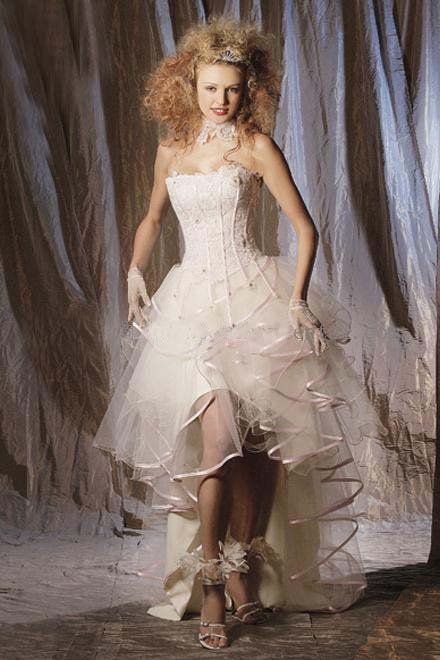 White With Stripes Tulle & Satin Asymmetrical Wedding Dresses |