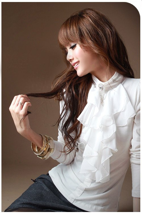 Whole Retail Free Shipping NEW Japan Bowknot Womens Shiny Beautiful Shirt Top White LM1586# |