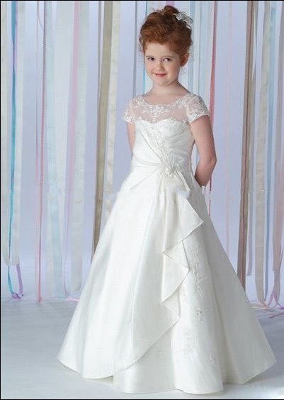 Wholesale Custom-made Short Sleeve A Line Flower Gril Dress FLW91705 |