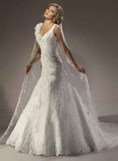 Wholesale - Florencia A-line Gown V-neckline Corset Closure Embroidered Chiffon Spaghetti Wedding Dresses |
