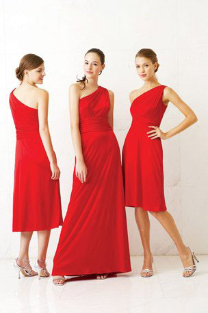 Wholesale - Red One-shoulder Sleeveless Sexy Lover Shaped Floor Length and Knee Length Taffeta Bridesmaid Dress |