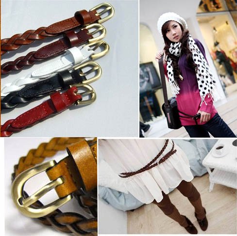 Woven Plaited Fashion Belt,genuine Leather Belt,Double Loops Belt+free Shipping |