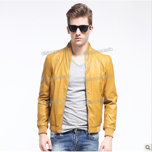 Yellow PU Leather Long Sleeves Men's Jackets & Coats |
