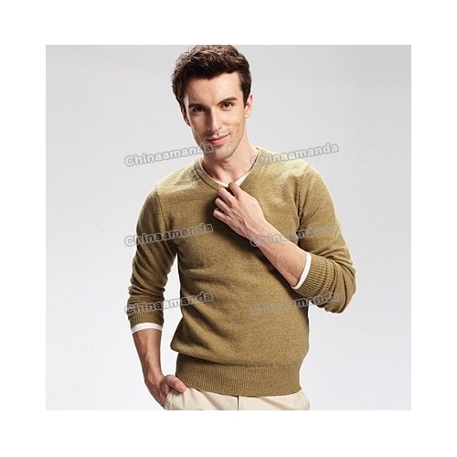 Yellow Pure Wool Fashion Casual Men's Sweaters |