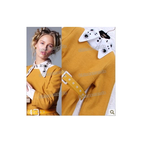 Yellow With Belts Nylon Wool Beading Winter Dresses |